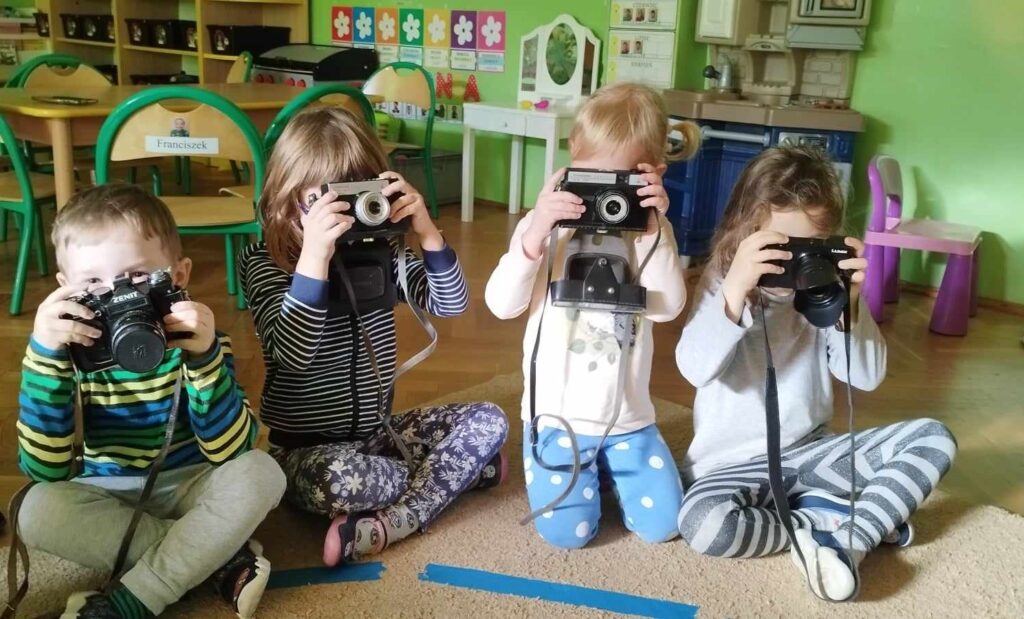 Nasze przedszkole realizuje plan roczny ,, Dziecko w świecie zawodów”. Tym razem poznaliśmy zawód fotografa. Dzieci miały okazje obejrzeć starsze i nowsze modele aparatów oraz dokonać ich porównania. Poznaliśmy też technikę luksografii czyli świetlnego odbicia obrazu na papierze fotograficznym.